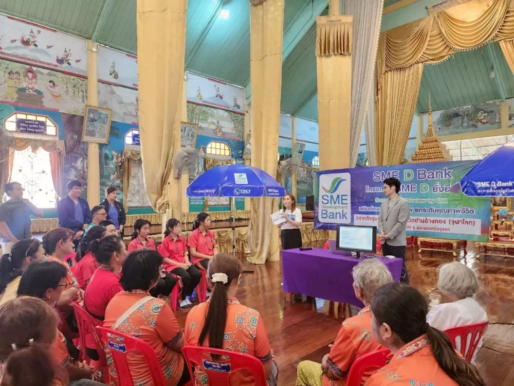 สำหรับกิจกรรม “SME D Partner by CSR” ธนาคารดำเนินการเชิงรุก ลงพื้นที่ถึงชุมชนต่าง ๆ ต่อเนื่อง เฉพาะปีนี้ (2568) จัดมาแล้ว 3 ครั้ง ได้แก่ วิสาหกิจชุมชนบ้านใหม่หนองแกทัพหลวง จ.อุทัยธานี วิสาหกิจชุมชน กลุ่มชุมชนวัดย่านอ่างทอง (จุฬาโลก) จ.พระนครศรีอยุธยา และวิสาหกิจชุมชนกลุ่มออมทรัพย์เพื่อการผลิตจักสานบ้านตลาดใหม่ จ.อ่างทอง ด้วยการเชิญวิทยากรของธนาคารที่มีความชำนาญด้านการเงิน และวิทยากรจากหน่วยงานพันธมิตรต่าง ๆ ที่มีความเชี่ยวชาญเฉพาะทาง มาถ่ายทอดความรู้ ตลอดจนอบรมเชิงปฏิบัติการ แนะนำแนวทางการพัฒนาชุมชนในหลากหลายมิติ เช่น การเขียนแผนธุรกิจ การบริหารการเงิน จัดทำบัญชี เทคนิคการทำตลาดยุคใหม่ผ่านสื่อออนไลน์ และการพัฒนาสินค้าเชิงนวัตกรรมและรักษ์โลก เป็นต้น ซึ่งจะสร้างประโยชน์ ผลักดันให้ผู้ประกอบการท้องถิ่นได้ยกระดับและเพิ่มมูลค่าสินค้า สามารถตอบความต้องการผู้บริโภคปัจจุบัน และเทรนด์ธุรกิจสีเขียวได้เป็นอย่างดี รวมถึง เปิดโอกาสเข้าถึงแหล่งทุน อัตราดอกเบี้ยพิเศษของ SME D Bank อีกด้วย