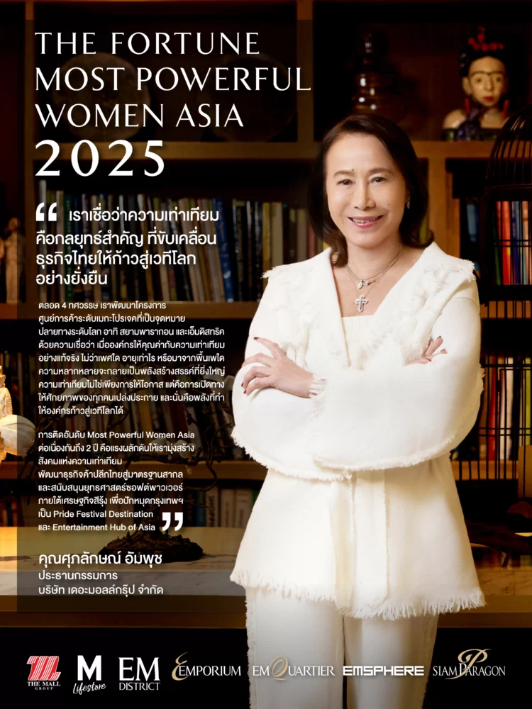 คุณศุภลักษณ์ อัมพุช ประธานกรรมการบริหาร กลุ่มเดอะมอลล์ กรุ๊ป จำกัด ได้รับการยกย่องให้ติดอันดับ “ผู้หญิงทรงอิทธิพลแห่งเอเชีย ประจำปี 2025” (Most Powerful Women Asia 2025) จากนิตยสาร Fortuneเป็นปีที่ 2 ติดต่อกัน  สำหรับการยกย่องผู้นำหญิง 100 คนที่มีบทบาทสำคัญในการใช้ความผันผวนทั้งในระดับภูมิภาคและระดับโลกเพื่อสร้างข้อได้เปรียบทางธุรกิจท่ามกลางผู้นำสตรี 100 คนจาก 14 ประเทศทั่วภูมิภาคเอเชีย-แปซิฟิก