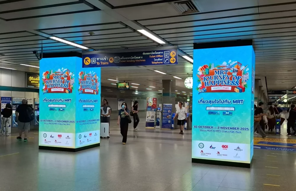 งาน MRT JOURNEY OF HAPPINESS 2025 ถือเป็นอีกหนึ่งก้าวสำคัญของ BMN ในการยกระดับพื้นที่ เชิงพาณิชย์ภายในสถานีรถไฟฟ้า MRT ให้กลายเป็นศูนย์กลางของกิจกรรมที่เชื่อมโยงการเดินทาง การใช้ชีวิต และการท่องเที่ยวเข้าด้วยกันอย่างสมบูรณ์แบบ พร้อมกันนี้ BMN ยังใช้จุดแข็งด้านสื่อโฆษณาภายในระบบรถไฟฟ้า MRT สนับสนุนการโปรโมทงานแบบครบวงจร สร้างการรับรู้ให้กับผู้โดยสาร MRT ซึ่งเป็นกลุ่มเป้าหมายที่มีศักยภาพสูง ด้านการท่องเที่ยวในเมืองและระยะใกล้ สามารถติดตามรายละเอียดกิจกรรมเพิ่มเติมได้ทาง Facebook Page: BMN