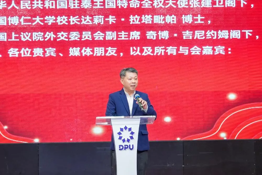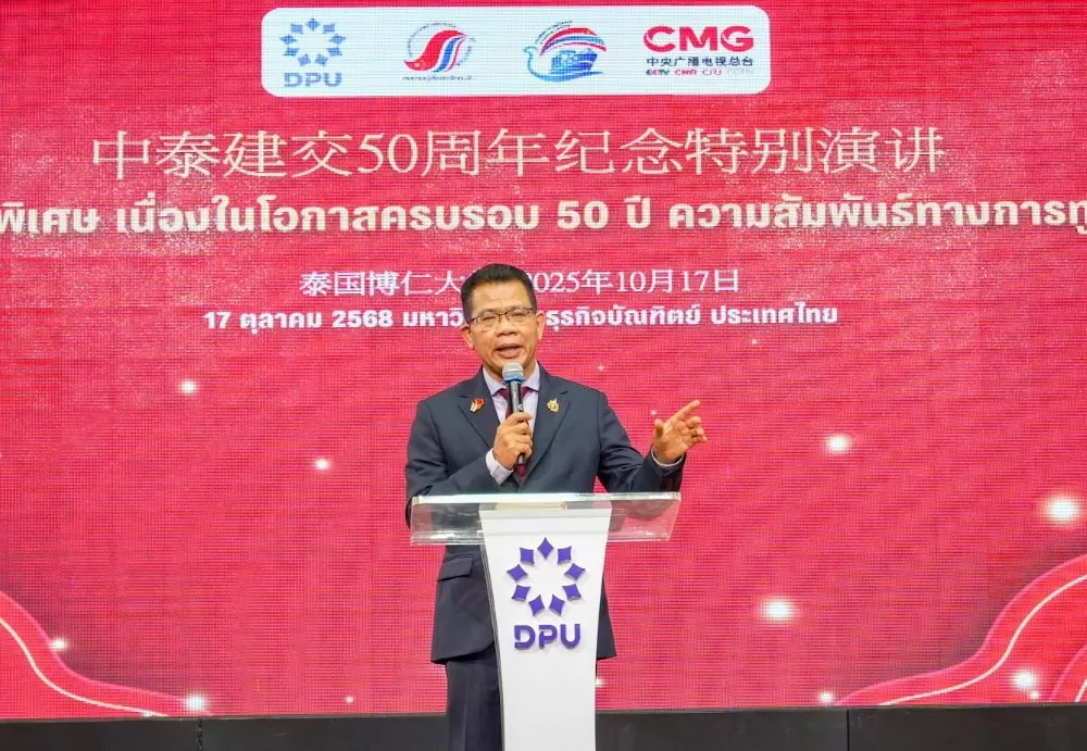 ดร.ดาริกา ลัทธพิพัฒน์ อธิการบดีมหาวิทยาลัยธุรกิจบัณฑิตย์ (DPU) กล่าวว่า ในวาระที่เฉลิมฉลองความสัมพันธ์ทางการทูตไทย-จีนครบ 50 ปี มีความหมายอย่างยิ่ง สะท้อนถึงมิตรภาพอันแน่นแฟ้นและมั่นคงระหว่างสองประเทศ ที่เติบโตบนพื้นฐานของความไว้วางใจ ความร่วมมือ และการแลกเปลี่ยนทางวัฒนธรรม การศึกษา และเศรษฐกิจอย่างต่อเนื่อง DPU ให้ความสำคัญกับการสร้างความร่วมมือทางการศึกษา ผ่านโครงการแลกเปลี่ยนนักศึกษาระหว่างทั้งสองประเทศ รวมถึงส่งเสริมการเรียนรู้ภาษาจีน และการทำงานร่วมกับสถาบันขงจื่อเส้นทางสายไหมทางทะเล เพื่อเปิดโลกทัศน์ให้เยาวชนไทยได้เข้าใจประเทศจีนในหลากหลายมิติ ไม่ว่าจะเป็นภาษา วัฒนธรรม เทคโนโลยี หรือเศรษฐกิจของโลกในยุคใหม่