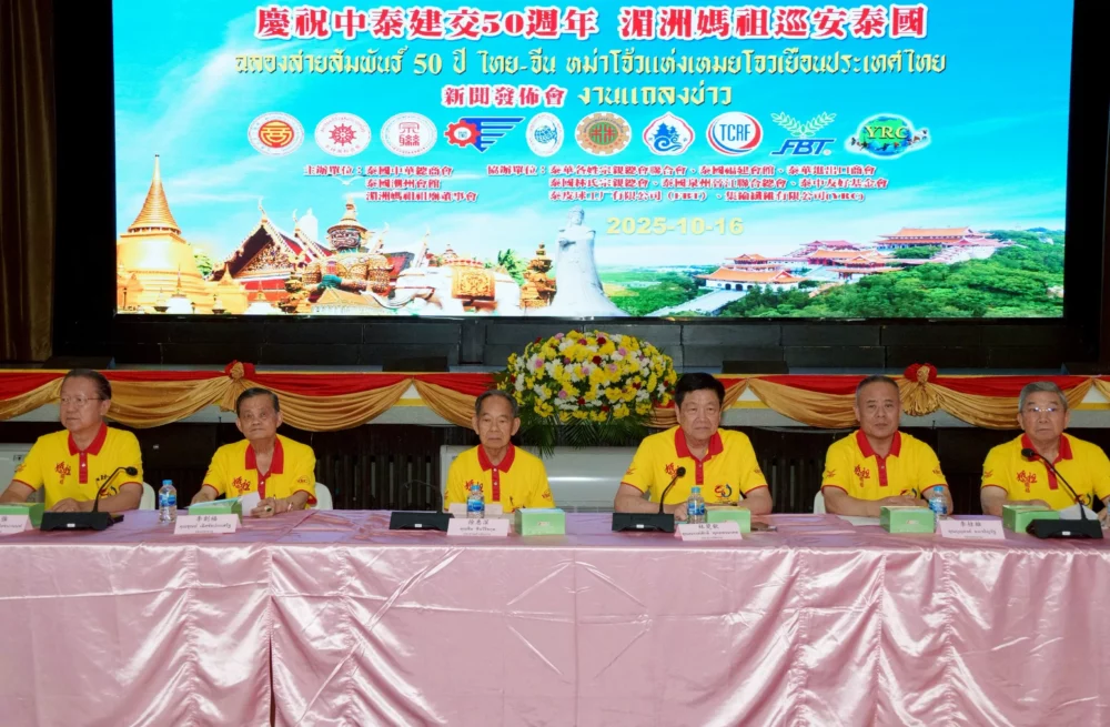 เมื่อวันที่ 16 ตุลาคม 2568 หอการค้าไทย-จีน และสมาคมแต้จิ๋วแห่งประเทศไทย จัดงานแถลงข่าวการจัดงาน “ฉลองสายสัมพันธ์ 50 ปี ไทย-จีน : หม่าโจ้วแห่งเหมยโจวเยือนประเทศไทย” ณ ห้องประชุม สมาคมแต้จิ๋วแห่งประเทศไทย