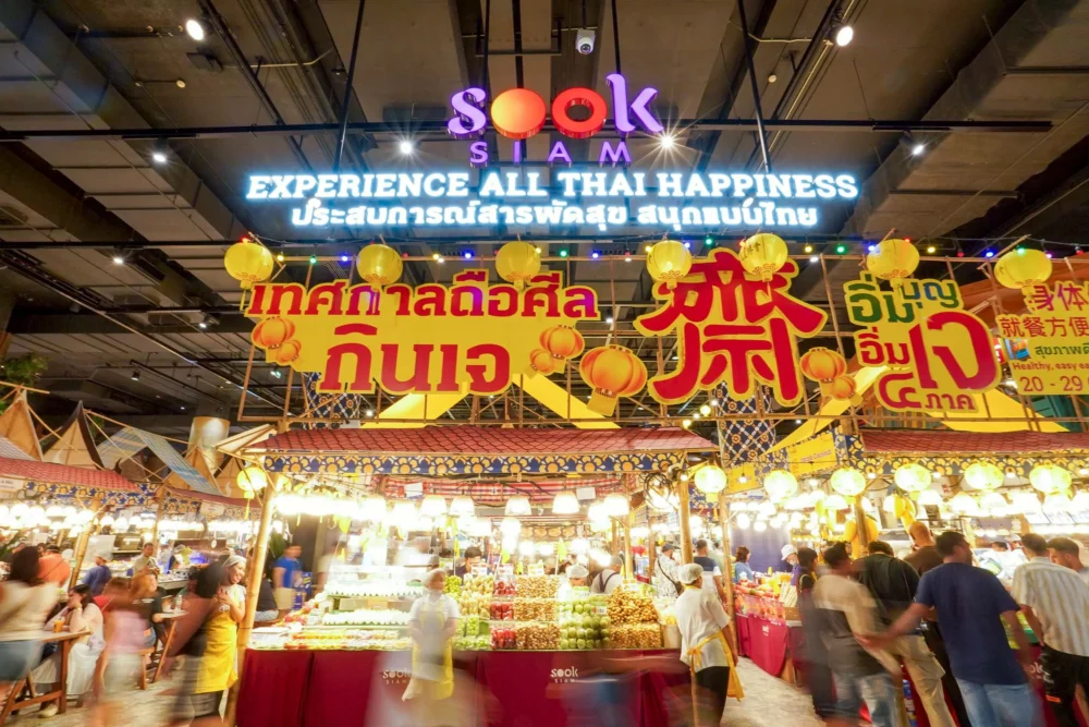 ในวันนี้ (20 ต.ค.) เมืองสุขสยามได้จัพิธีเปิดงานต้อนรับเทศกาลกินเจในงาน อิ่มบุญ อิ่มเจ 4 ภาค โดยได้รับเกียรติจากคุณนันทญา เขียวแสวง ผู้ช่วยผู้อำนวยการเขตคลองสาน ประธานในพิธี คุณบัญชา ฉันทดิลก กรรมการผู้จัดการโครงการสุขสยาม, คุณปัณณิตา วรรณโกวิท ผู้ช่วยผู้อำนวยการฝ่ายกิจกรรมการตลาด บริษัท ไอคอนสยาม จำกัด พร้อมด้วยพันธมิตร ร่วมทำพิธีสักการะ พระโพธิสัตว์กวนอิม ปางพันกร หลังจากนั้นเข้าสู่พิธีเปิดงานอย่างเป็นทางการ