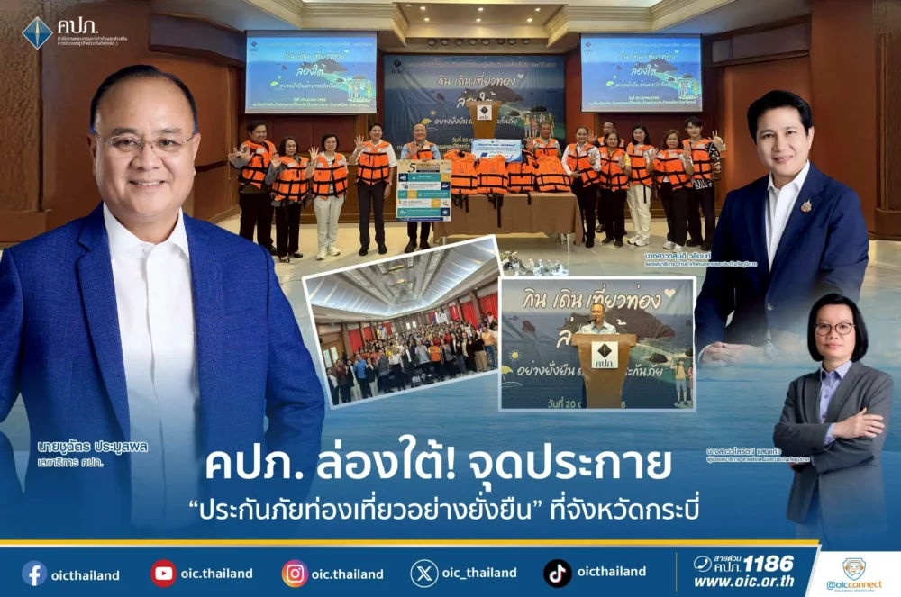 เมื่อวันที่ 20 ตุลาคม 2568 สำนักงานคณะกรรมการกำกับและส่งเสริมการประกอบธุรกิจประกันภัย (สำนักงาน คปภ.) นำโดย นายชูฉัตร ประมูลผล เลขาธิการ คปภ. ลงพื้นที่จังหวัดกระบี่ เปิดโครงการส่งเสริมประกันภัยเชิงรุก ภายใต้แนวคิด “กิน เดิน เที่ยวท่อง ล่องใต้อย่างยั่งยืน ด้วยการประกันภัย” ณ โรงแรมกระบี่ รีสอร์ท ตำบลอ่าวนาง อำเภอเมือง จังหวัดกระบี่