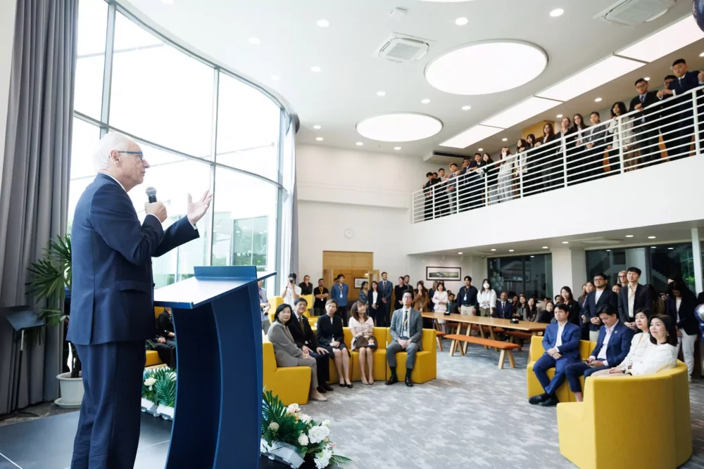 “อาคาร Sixth Form Centre แห่งนี้จะไม่มีความหมายเลย หากไม่มีผู้คนที่ทำให้มันมีชีวิต หวังว่านักเรียนทุกคนจะได้ใช้ Sixth Form Centre แห่งนี้อย่างเต็มที่และเกิดประโยชน์สูงสุด ทั้งในด้านการเรียนรู้ การเติบโต ตลอดจนการสร้างแรงบันดาลใจให้กันและกัน เรียนรู้ที่จะทำงานร่วมกับเพื่อน เรียนรู้ที่จะสร้างมิตรภาพ เพราะมิตรภาพในช่วงวัยนี้คือสิ่งล้ำค่าที่สุดในชีวิต ดังนั้น ขอให้นักเรียนทุกคนใช้ช่วงเวลาในวัยนี้ให้คุ้มค่า สนุกกับการเรียนรู้ และสนุกกับการสร้างมิตรภาพที่แท้จริง”