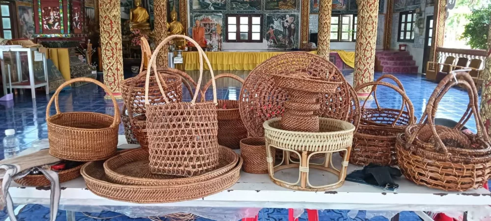 “น้ำตาแม่หม้าย” เป็นเถาวัลย์ชนิดหนึ่งมีความเหนียวมาก ชาวบ้านจึงมักนำมาสานเป็นตระกร้า จนเป็นอีกหนึ่งสินค้าอัตลักษณ์ของวังชิ้น โดยเรื่องเล่าของชื่อนี้มีสองนัย หนึ่งคือ เวลาไปเก็บมาใช้ต้องไปเป็นคู่ เพราะเหนียวมากดึงคนเดียวไม่ได้ แต่แม่หม้ายไม่มีคู่ ทำให้ต้องไปคนเดียว ซึ่งดึงอย่างไรก็ไม่ขาดจึงได้แต่นั่งร้องไห้ ส่วนอีกนัยหนึ่ง เพราะแม่หม้ายไร้คู่ ไม่มีคนนวดให้เวลาปวดเมื่อย ทำได้แค่นั่งดื่มน้ำต้มเถาวัลย์ เพื่อคลายปวดเมื่อย