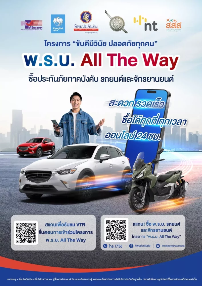 อำนวยความสะดวกให้ประชาชนซื้อประกันภัยภาคบังคับ (พ.ร.บ.) ได้ง่าย รวดเร็ว ทุกที่ทุกเวลา ผ่านช่องทาง Line :@Dhipayainsurance  , เว็บไซต์ : www.tipinsure.com  ช่วยให้ผู้ใช้รถปฏิบัติตามกฎหมาย และมั่นใจทุกครั้งที่เดินทาง