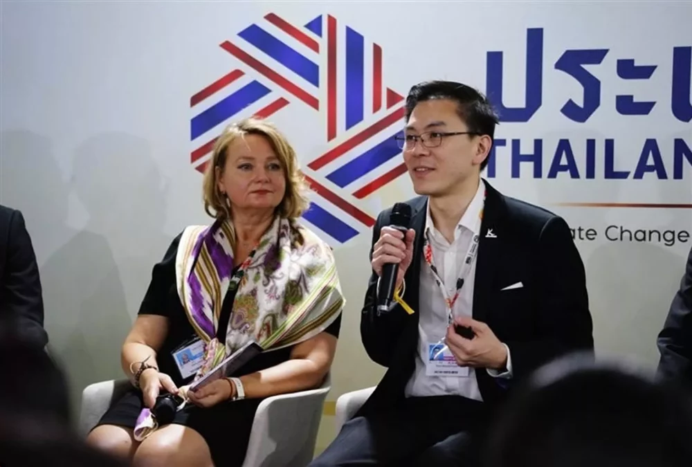 และยังร่วมเสวนาในหัวข้อ “Driving Systems Change through Climate Public-Private Partnerships (PPP) ขับเคลื่อนการเปลี่ยนแปลงเชิงระบบผ่านความร่วมมือภาครัฐ–เอกชน” ซึ่งสะท้อนถึงความจำเป็นของความร่วมมือเชิงระบบ (Systems Change) ระหว่างภาครัฐ ภาคเอกชน และภาคประชาสังคม เพื่อขับเคลื่อน Climate Action อย่างมีประสิทธิภาพ ทั้งจากมุมมองระดับโลกของ UNFCCC ด้านการระดมทรัพยากร ไปจนถึงตัวอย่างความร่วมมือในประเทศไทยที่ธนาคารกสิกรไทยมีบทบาทสำคัญ เช่น โครงการ Thailand Climate Business Network (Thai CBN) เครือข่ายภาคธุรกิจ 34 องค์กร จาก 4 ภาคส่วน ได้แก่ ภาครัฐและรัฐวิสาหกิจ ภาคเอกชน ภาคการศึกษา และภาคการเงินและการธนาคาร ซึ่งร่วมกันผลักดันการจัดการสภาพภูมิอากาศแบบบูรณาการ รวมถึง โครงการ Net Zero CEO หลักสูตรสำหรับผู้บริหารระดับสูงที่ธนาคารกสิกรไทยร่วมพัฒนากับสถาบันคาร์บอนเพื่อความยั่งยืน (CBiS) เพื่อเสริมศักยภาพผู้นำองค์กรในการขับเคลื่อนธุรกิจสู่การปล่อยคาร์บอนต่ำอย่างยั่งยืน