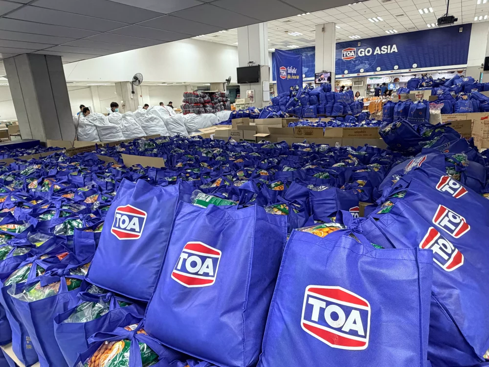 คุณประจักษ์ ตั้งคารวคุณ ประธานผู้ก่อตั้ง TOA และ ประธานมูลนิธิคุณแม่ลี้กิมเกียว ตั้งคารวคุณ เดินหน้าโครงการ TOA ไม่ทิ้งกัน ‘รวมพลังไทย ฟื้นฟูน้ำท่วมภาคใต้’ จัดเตรียมสิ่งของบรรเทาทุกข์ ถุงยังชีพ โดยได้รับความร่วมแรงร่วมใจจากผู้บริหาร และเพื่อนพนักงานทีโอเอจิตอาสากว่า 100 คน ร่วมกันบรรจุถุงยังชีพกว่า 2,000 ชุด ประกอบด้วย ข้าวสาร บะหมี่กึ่งสำเร็จรูป ปลากระป๋อง ถั่วมารูโจ้ น้ำยาทำความสะอาดทีโพล์ สเปรย์กำจัดแมลง เชนไดร้ท์ และสิ่งของจำเป็นอื่นๆ พร้อมทั้งจัดเตรียมผ้าห่มกันหนาว จำนวน 1,000 ผืน เพื่อช่วยเหลือผู้ประสบอุทกภัยจากความเสียหายหลังน้ำท่วม และบรรเทาความหนาวเย็นในช่วงฤดูหนาว