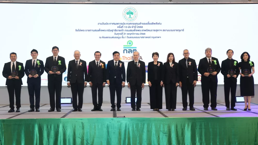 นายณัทธร โพธิแพทย์ รองผู้อำนวยการธนาคารออมสิน ในฐานะประธานกรรมการกองทุนสำรองเลี้ยงชีพ พนักงานธนาคารออมสิน ซึ่งจดทะเบียนแล้ว รับโล่รางวัลกระทรวงการคลัง รางวัลรองชนะเลิศ ประเภทกองทุนเดี่ยว (Single Fund) กองทุนสำรองเลี้ยงชีพ กลุ่มหน่วยงานรัฐวิสาหกิจ ขนาดกองทุนมากกว่า 15,000 ล้านบาท จาก นายปิยกร อภิบาลศรี หัวหน้าผู้ตรวจราชการกระทรวงการคลัง ภายในงานประกาศผลการประกวดกองทุนสำรองเลี้ยงชีพดีเด่น ครั้งที่ 13 ประจำปี 2568 ซึ่งสมาคมกองทุนสำรองเลี้ยงชีพจัดขึ้น โดยมีคณะผู้บริหาร และคณะกรรมการกองทุนสำรองเลี้ยงชีพธนาคารออมสิน ร่วมแสดงความยินดี ณ โรงแรมแอมบาสซาเดอร์ กรุงเทพฯ เมื่อเร็ว ๆ นี้