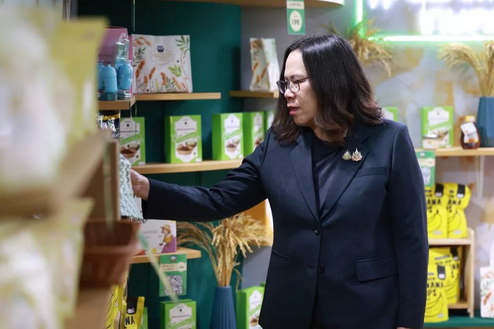 นางสาวพรหมกร พรหมขัติแก้ว ผู้ช่วยผู้จัดการธนาคารเพื่อการเกษตรและสหกรณ์การเกษตร (ธ.ก.ส.) เป็นผู้แทนธนาคารร่วมพิธีเปิดงานและเยี่ยมชมร้านกาชาดกระทรวงการคลัง ซึ่งปีนี้จัดขึ้นภายใต้คอนเซ็ปต์“ร้อยดวงใจปวงประชา น้อมสำนึกพระเมตตา องค์สภานายิกาสภากาชาดไทย” เพื่อน้อมรำลึกถึงสมเด็จพระนางเจ้าสิริกิติ์ พระบรมราชินีนาถ พระบรมราชชนนีพันปีหลวง กำหนดจัดขึ้นระหว่างวันที่ 11 – 21 ธันวาคม 2568 รวม 11 วัน 11 คืน โดย ธ.ก.ส. ได้นำเสนอผลงานธนาคารที่เชื่อมโยงเกี่ยวข้องกับพระราชกรณียกิจของพระองค์รวมถึงสะท้อนบทบาทภารกิจของธนาคารในการพัฒนาและยกระดับรายได้ในภาคการเกษตรและชนบท ผ่านสินค้าแกลมเกษตรที่มีการพัฒนาและยกระดับเป็นสินค้าระดับพรีเมียมที่สวยงามมากด้วยคุณค่า เหมาะในการนำเป็นของฝากของที่ระลึก หรือของขวัญปีใหม่ มาโชว์และจัดจำหน่ายภายในงาน เช่น ข้าวพร้อมทานตรา อุ่นอิ่ม ที่สามารถรับประทานได้ทันที สะดวก สะอาด ปลอดภัย พกพาง่ายโดยไม่ต้องอุ่นเก็บได้นานถึง 18 เดือน เครื่องดื่ม ขนม และของว่างทานเล่นแสนอร่อย และสินค้าประเภท Crafts ที่ผลิตด้วยฝีมืออันประณีตจากชุมชน เป็นต้น โดยสินค้าทุกชิ้นที่เลือกซื้อ ยังเป็นส่วนสำคัญในการเสริมสร้างศักยภาพภาคเกษตรไทยให้เติบโตอย่างแข็งแกร่งและยั่งยืนอีกด้วย เมื่อวันที่ 11 ธันวาคม 2568 ณ สวนลุมพินี กรุงเทพมหานคร