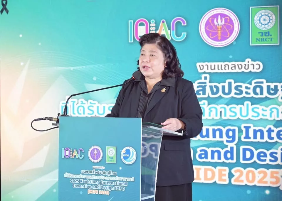 สำนักงานการวิจัยแห่งชาติ (วช.) กระทรวงการอุดมศึกษา วิทยาศาสตร์ วิจัยและนวัตกรรม จัดงานแถลงข่าวนำเสนอผลงานสิ่งประดิษฐ์ของนักวิจัยไทยที่ได้รับรางวัลจากเวที “2025 Kaohsiung International Invention and Design EXPO (KIDE 2025)” โดย ดร.วิภารัตน์ ดีอ่อง ผู้อำนวยการสำนักงานการวิจัยแห่งชาติ เป็นประธานในพิธี ณ ศูนย์ข้อมูลสารสนเทศกลางด้านวิทยาศาสตร์ วิจัยและนวัตกรรมของประเทศ อาคาร วช. 8 สำนักงานการวิจัยแห่งชาติ