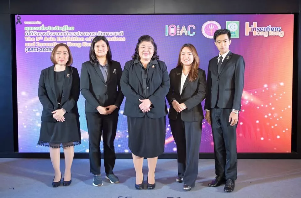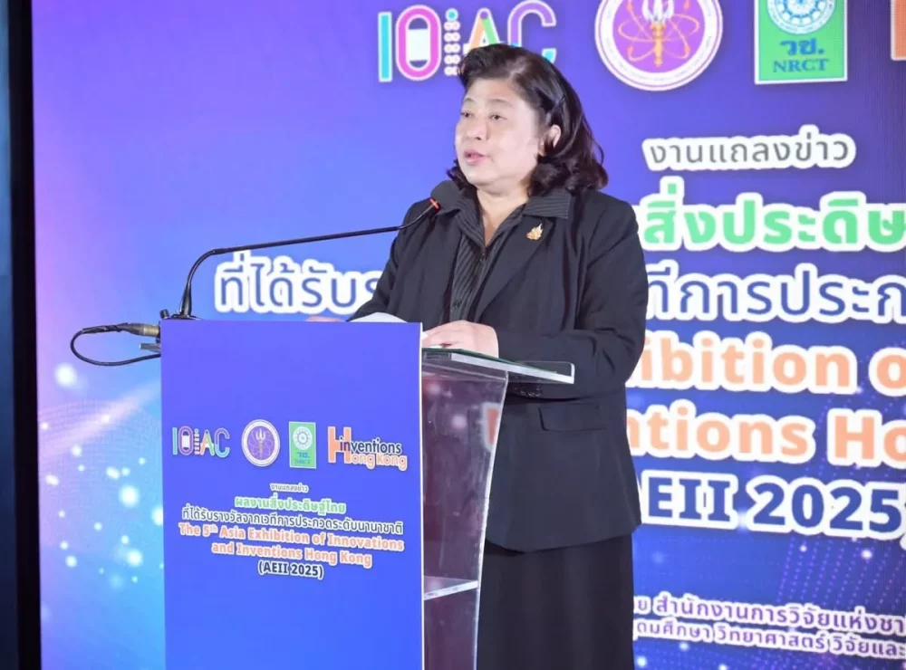 สำนักงานการวิจัยแห่งชาติ(วช.) กระทรวงการอุดมศึกษา วิทยาศาสตร์ วิจัยและนวัตกรรม จัดงานแถลงข่าวอย่างเป็นทางการ ณ ศูนย์ข้อมูลสารสนเทศกลางด้านวิทยาศาสตร์ วิจัยและนวัตกรรมของประเทศ เพื่อประกาศผลงานและความสำเร็จอันทรงเกียรติของคณะนักประดิษฐ์และนักวิจัยไทย ที่ได้รับรางวัลจากการประกวดระดับนานาชาติ “The 5th Asia Exhibition of Innovations and Inventions Hong Kong” (AEII) ที่จัดขึ้นระหว่างวันที่ 4 – 5 ธันวาคม 2568 ณ เขตบริหารพิเศษฮ่องกงแห่งสาธารณรัฐประชาชนจีน โดย ดร.วิภารัตน์ ดีอ่อง ผู้อำนวยการสํานักงานการวิจัยแห่งชาติ ให้เกียรติเป็นประธานในพิธี พร้อมด้วย ผู้บริหารและบุคลากร วช. นักประดิษฐ์ นักวิจัย และสื่อมวลชนให้การต้อนรับ