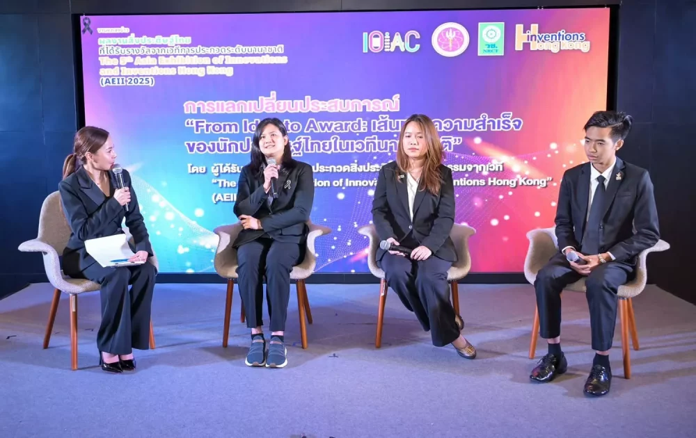 ภายหลังจากการแถลงผลรางวัล วช. ได้จัดการเสวนาพิเศษในหัวข้อ “From Idea to Award: เส้นทางความสำเร็จของนักประดิษฐ์ไทยในเวทีนานาชาติ” โดยได้รับเกียรติจากผู้ได้รับรางวัลสำคัญร่วมแบ่งปันประสบการณ์และมุมมองที่เป็นประโยชน์ เพื่อเป็นแรงขับเคลื่อนและแนวทางในการพัฒนาต่อยอดงานประดิษฐ์และนวัตกรรมของไทยให้ก้าวหน้ายิ่งขึ้น