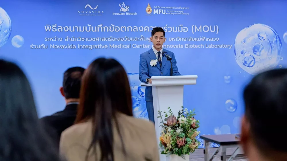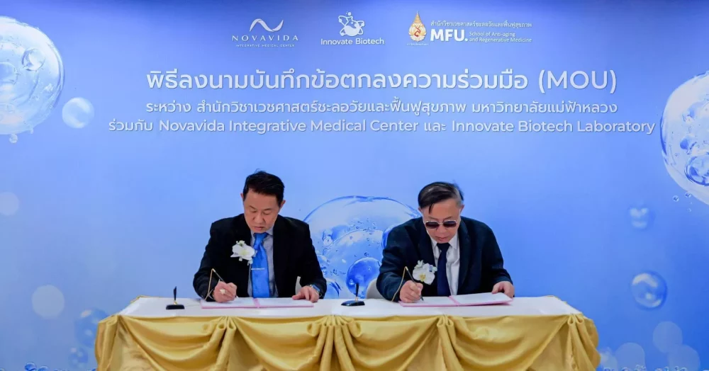 กรุงเทพฯ — สำนักวิชาเวชศาสตร์ชะลอวัยและฟื้นฟูสุขภาพ มหาวิทยาลัยแม่ฟ้าหลวง เดินหน้าสร้างมาตรฐานใหม่ของเวชศาสตร์ชะลอวัยและฟื้นฟูสุขภาพของประเทศ ด้วยการลงนามบันทึกข้อตกลงความร่วมมือ (MOU) ร่วมกับ Novavida Integrative Medical Center และ Innovate Biotech Laboratory เพื่อบูรณาการการศึกษา งานวิจัย และการแพทย์เชิงปฏิบัติในศาสตร์ด้าน Anti-Aging & Regenerative Medicine อย่างเป็นระบบและยั่งยืน