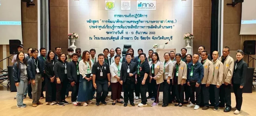นายพีรพันธ์ คอทอง เลขาธิการสำนักงานเศรษฐกิจการเกษตร (สศก.) เปิดเผยว่า เศรษฐกิจการเกษตรอาสา หรือ ศกอ. ถือเป็นอาสาสมัครที่มีบทบาทสำคัญในการขับเคลื่อนงานด้านเศรษฐกิจการเกษตรในระดับพื้นที่ โดยทำหน้าที่สนับสนุนการดำเนินงานของภาครัฐในการจัดเก็บรวบรวมข้อมูล รายงานสถานการณ์การผลิต และราคาสินค้าเกษตร เพื่อให้ข้อมูลมีความถูกต้อง ครบถ้วน และทันต่อสถานการณ์ ดังนั้น เพื่อเป็นการยกระดับศักยภาพของ ศกอ. ให้มีความพร้อมในการปฏิบัติงาน ในปีงบประมาณ พ.ศ. 2569 สศก. จึงได้เดินหน้าขับเคลื่อนโครงการอบรมเชิงปฏิบัติการ “การพัฒนาศักยภาพเศรษฐกิจการเกษตรอาสา (ศกอ.) ประจำศูนย์เรียนรู้การเพิ่มประสิทธิภาพการผลิตสินค้าเกษตร (ศพก.)” ระดับภาค โดยเริ่มต้นคิกออฟ (Kick off) การอบรมในส่วนของ พื้นที่ภาคตะวันออกและภาคตะวันตก เป็นลำดับแรก ดำเนินการโดยสำนักงานเศรษฐกิจการเกษตรที่ 6 ชลบุรี (สศท.6) และสำนักงานเศรษฐกิจการเกษตรที่ 10 ราชบุรี (สศท.10) จัดขึ้นเมื่อวันที่ 18 – 19 ธันวาคม 2568 ณ โรงแรม แซนด์ดูนส์ เจ้าหลาว บีช รีสอร์ท จังหวัดจันทบุรี