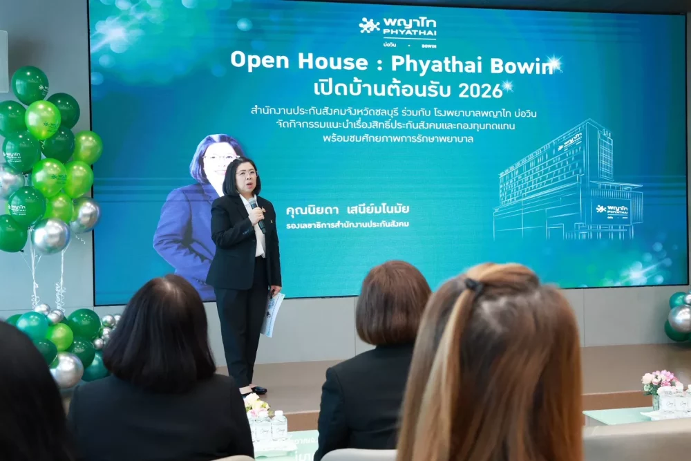 โรงพยาบาลพญาไทบ่อวิน จัดกิจกรรม “เปิดบ้านพญาไทบ่อวิน (Open House : Phyathai Bowin)” ประกาศความพร้อมเข้าร่วมเป็นสถานพยาบาลในระบบประกันสังคมอย่างเป็นทางการในปี 2569 รองรับผู้ประกันตนได้สูงสุด 50,000 คน พร้อมเปิดเวทีแลกเปลี่ยนองค์ความรู้ด้านนโยบายประกันสังคม และแนวทางการยกระดับคุณภาพการดูแลสุขภาพคนทำงานในภาคอุตสาหกรรมอย่างยั่งยืน ภายในงานได้รับเกียรติจาก นายแพทย์มาโนช พานทองวิริยะกุล ผู้อำนวยการโรงพยาบาลพญาไทบ่อวิน และ คุณนิยดา เสนีย์มโนมัย รองเลขาธิการสำนักงานประกันสังคม ร่วมด้วยผู้บริหารจากสำนักงานประกันสังคมจังหวัดชลบุรี จังหวัดระยอง สาขาศรีราชา และสาขาปลวกแดง รวมถึงหน่วยงานภาครัฐ ภาคเอกชน และผู้แทนสถานประกอบการในนิคมอุตสาหกรรม เข้าร่วมงานอย่างคับคั่ง