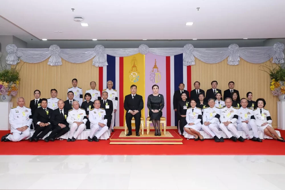 พระบาทสมเด็จพระเจ้าอยู่หัว และสมเด็จพระนางเจ้า ฯ พระบรมราชินี เสด็จพระราชดำเนินไปทรงเปิดพระราชานุสาวรีย์ สมเด็จพระมหิตลาธิเบศร อดุลยเดชวิกรม พระบรมราชชนก ประทับคู่ สมเด็จพระศรีนครินทราบรมราชชนนี ณ โรงพยาบาลศูนย์การแพทย์มหาวิทยาลัยแม่ฟ้าหลวง อำเภอเมืองเชียงราย จังหวัดเชียงราย โดยมีศาสตราจารย์พิเศษวันชัย ศิริชนะ (แถวหน้าที่ 5 จากซ้าย) นายกสภามหาวิทยาลัยแม่ฟ้าหลวง ผู้ช่วยศาสตราจารย์มัชฌิมา นราดิศร (แถวหน้าที่ 5 จากขวา) อธิการบดีมหาวิทยาลัยแม่ฟ้าหลวง ซึ่งมีนายชัย โสภณพนิช (แถวหน้าที่ 3 จากขวา) ประธานกรรมการ บริษัท กรุงเทพประกันภัย จำกัด (มหาชน) ในฐานะกรรมการสภามหาวิทยาลัย พร้อมด้วยคณะกรรมการสภามหาวิทยาลัย คณาจารย์ บุคลากร นักศึกษา และประชาชน เฝ้าทูลละอองธุลีพระบาทรับเสด็จ เมื่อวันที่ 15 มกราคม 2569