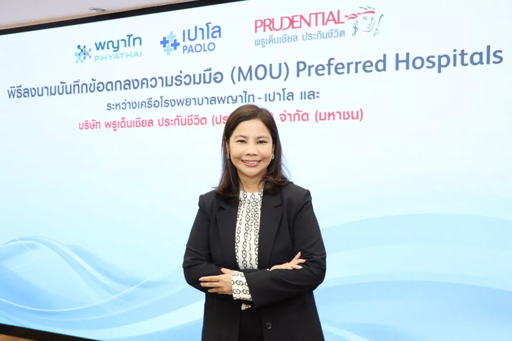 นางสาวเปสลารี ธีระสาสน์ ประธานเจ้าหน้าที่บริหารสายงานเทคโนโลยีและปฏิบัติการ และสายงานสุขภาพ บริษัท พรูเด็นเชียล ประกันชีวิต (ประเทศไทย) จำกัด (มหาชน) หรือ พรูเด็นเชียล ประเทศไทย และ นายศุภกร พะวันนา ผู้อำนวยการสายบริหารการตลาด เครือโรงพยาบาลพญาไท–เปาโล ร่วมลงนามบันทึกข้อตกลงความร่วมมือ (MOU) เพื่อมอบสิทธิพิเศษด้านสุขภาพ ครอบคลุมการส่งเสริมสุขภาพเชิงป้องกัน การตรวจวินิจฉัย และการรักษาที่มีคุณภาพ ตอกย้ำความมุ่งมั่นในการดูแลลูกค้าในทุกช่วงชีวิตอย่างแท้จริง