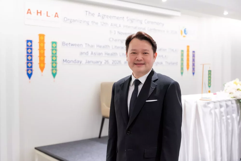 นายทศพร นิษฐานนท์ (ที่ 5 จากซ้าย) กรรมการผู้จัดการ บริษัท แอมเวย์ (ประเทศไทย) จำกัด ร่วมสนับสนุนการประชุมระดับนานาชาติ ว่าด้วยความรอบรู้ด้านสุขภาพ AHLA ครั้งที่ 12 ในพิธีลงนามบันทึกข้อตกลงความร่วมมือระหว่างสมาคมความรอบรู้ด้านสุขภาพแห่งเอเชีย (AHLA) และสมาคมส่งเสริมความรอบรู้ด้านสุขภาพไทย (THLA) เพื่อเตรียมความพร้อมในการจัดการประชุมวิชาการนานาชาติ ครั้งที่ 12 ประจำปี 2026 (The 12th AHLA International Health Literacy Conference) โดยมีเป้าหมายเป็นเวทีแลกเปลี่ยนองค์ความรู้ งานวิจัย และแนวปฏิบัติด้านสุขภาพจากผู้เชี่ยวชาญทั้งในและต่างประเทศ เพื่อร่วมกันยกระดับความรอบรู้ด้านสุขภาพ และขับเคลื่อนสุขภาวะที่ยั่งยืนของสังคมไทยและภูมิภาค ภายใต้ธีมหลัก “ความรอบรู้ด้านสุขภาพและเป้าหมายการพัฒนาที่ยั่งยืน” (Health Literacy & SDGs) ซึ่งจะจัดขึ้นระหว่างวันที่ 1 – 3 พฤศจิกายน 2569 ณ ศูนย์ประชุมมหาวิทยาลัยเชียงใหม่ โดยมี นายแพทย์วชิระ เพ็งจันทร์ (กลาง) นายกสมาคมส่งเสริมความรอบรู้ด้านสุขภาพไทย (THLA) เป็นประธานในพิธี