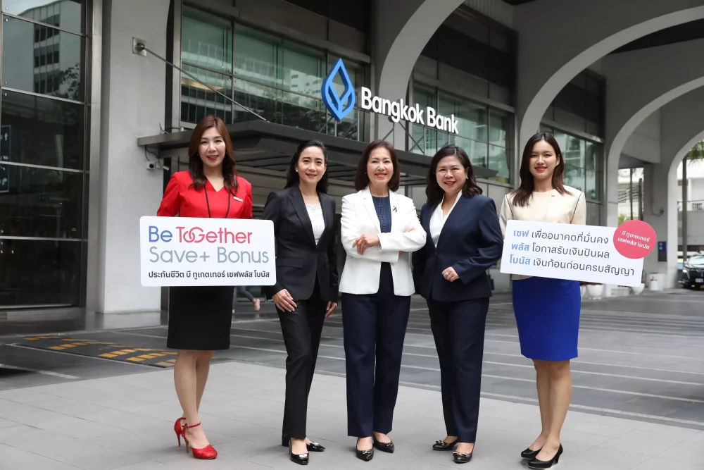 นางสาวพรพิมล ตรงเที่ยงธรรม ผู้ช่วยผู้จัดการใหญ่ ธนาคารกรุงเทพ จำกัด (มหาชน) กล่าวว่า “ในปัจจุบันผู้บริโภคต้องรับมือกับความไม่แน่นอนทางเศรษฐกิจ และดอกเบี้ยโลกที่อยู่ในภาวะขาลง จึงจำเป็นต้องวางแผนการเงินอย่างรอบคอบและมีประสิทธิภาพ ธนาคารกรุงเทพมุ่งมั่นที่จะช่วยให้ลูกค้าบริหารจัดการอนาคตทางการเงินทั้งในมิติของความคุ้มครองและการออมได้อย่างคุ้มค่าในระยะยาว จึงร่วมมือกับเอไอเอ ประเทศไทย พัฒนาผลิตภัณฑ์ประกันชีวิตใหม่ “บี ทูเกตเทอร์ เซฟพลัส โบนัส” (Be Together Save+ Bonus) เพื่อเป็นทางเลือกในการวางแผนทางการเงินที่ช่วยออมพร้อมคุ้มครองชีวิตแบบเข้าใจง่าย ไม่ซับซ้อน ภายใต้แนวคิด “เซฟ เพื่ออนาคตที่มั่นคง พลัส โอกาสรับเงินปันผล โบนัส เงินก้อนก่อนครบสัญญา” โดยจ่ายเบี้ยสั้นเพียง 8 ปี คุ้มครองยาว 20 ปี รับผลประโยชน์ที่ชัดเจนจากเงินคืนระหว่างสัญญา ขณะเดียวกันลูกค้ายังมีโอกาสได้ผลตอบแทนที่เพิ่มขึ้นในรูปแบบเงินปันผลจากการลงทุน จึงถือเป็นเครื่องมือทางการเงินที่มีความเสี่ยงต่ำ ที่สำคัญคือสมัครง่าย ไม่ต้องตรวจสุขภาพ เพียงตอบคำถามสุขภาพอย่างสั้น นอกจากนี้ ลูกค้ายังสามารถเลือกรับความคุ้มครองด้านอื่น ๆ เพิ่มเติมได้โดยเลือกซื้อสัญญาเพิ่มเติมกลุ่มต่าง ๆ เช่น กลุ่มค่ารักษาพยาบาล โรคร้ายแรง ชดเชยรายได้ ยกเว้นการชำระเบี้ยประกันภัย และอุบัติเหตุ ซึ่งเบี้ยประกันภัยสามารถนำไปใช้สิทธิลดหย่อนภาษีเงินได้บุคคลธรรมดาตามหลักเกณฑ์ของกรมสรรพากร โดยผลิตภัณฑ์นี้เปิดขายในช่องทางธนาคารกรุงเทพเท่านั้น นับเป็นแผนประกันชีวิตยุคใหม่ที่สร้างความอุ่นใจให้กับลูกค้า เหมือนเช่นที่ธนาคารเป็น “เพื่อนคู่คิด” ในทุกมิติทางการเงินเสมอมา”