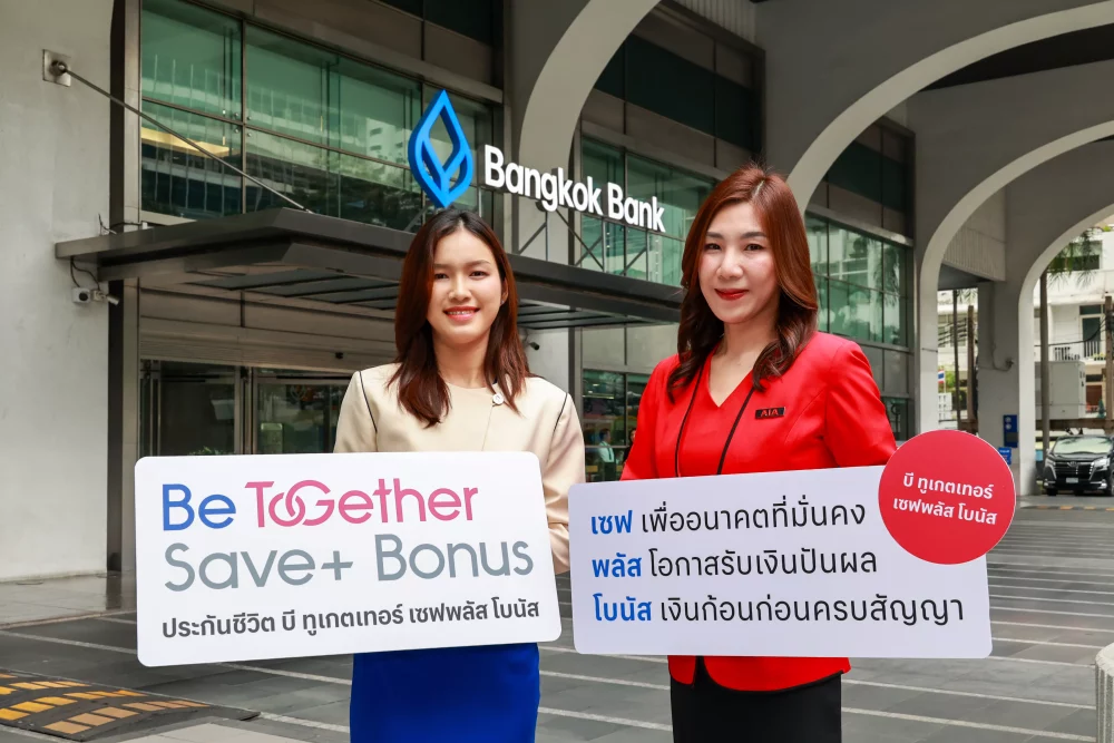 เอไอเอ จับมือ ธนาคารกรุงเทพ เปิดแผนประกันชีวิตใหม่ มั่นใจยิ่งกว่าเดิมกับ บี ทูเกตเทอร์ เซฟพลัส โบนัส (Be Together Save+ Bonus) หนุนออมคุ้มระยะยาว