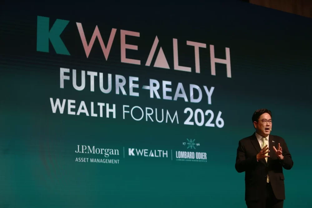 งานสัมมนาใหญ่แห่งปี K WEALTH Forum 2026: Your Future-Ready Wealth โดยธนาคารกสิกรไทย ผนึกกำลัง K WEALTH CIO ร่วมด้วยพันธมิตรระดับโลกอย่าง J.P. Morgan Asset Management และ Lombard Odier ระบุว่าโลกการลงทุนกำลังก้าวเข้าสู่จุดเปลี่ยนเชิงโครงสร้างสู่สภาวะ “เศรษฐกิจแบ่งขั้ว” และปรากฏการณ์ “The Great Repricing” หรือการปรับมูลค่าสินทรัพย์ครั้งใหญ่ พร้อมเปิดตัว “KEWIN” AI ทำงานร่วมกับทีม K WEALTH CIO วิเคราะห์อินไซต์การลงทุนจากทั่วโลกแบบเรียลไทม์ เพื่อส่งสัญญาณปรับพอร์ตให้สอดคล้องกับเป้าหมายและระดับความเสี่ยงของลูกค้าแต่ละราย