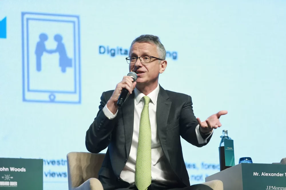 Mr. Alexander Treves, Managing Director, Head of Investment Specialist- Asia, J.P. Morgan Asset Management ฉายภาพชัดถึงการเปลี่ยนผ่านสู่ยุค AI อย่างเต็มรูปแบบที่จะเข้ามาปฏิวัติผลิตผลของเศรษฐกิจโลกในทุกมิติ ท่ามกลางสมรภูมิการแข่งขันระหว่างมหาอำนาจอย่างสหรัฐฯ และจีน ที่ต่างเร่งชิงความได้เปรียบเพื่อลดการพึ่งพาประเทศอื่น โดยคาดการณ์ว่าจะมีเม็ดเงินลงทุนสะสมในธุรกิจที่เกี่ยวข้องกับ AI พุ่งสูงถึง 3 ล้านล้านดอลลาร์สหรัฐในช่วงปี 2024–2029