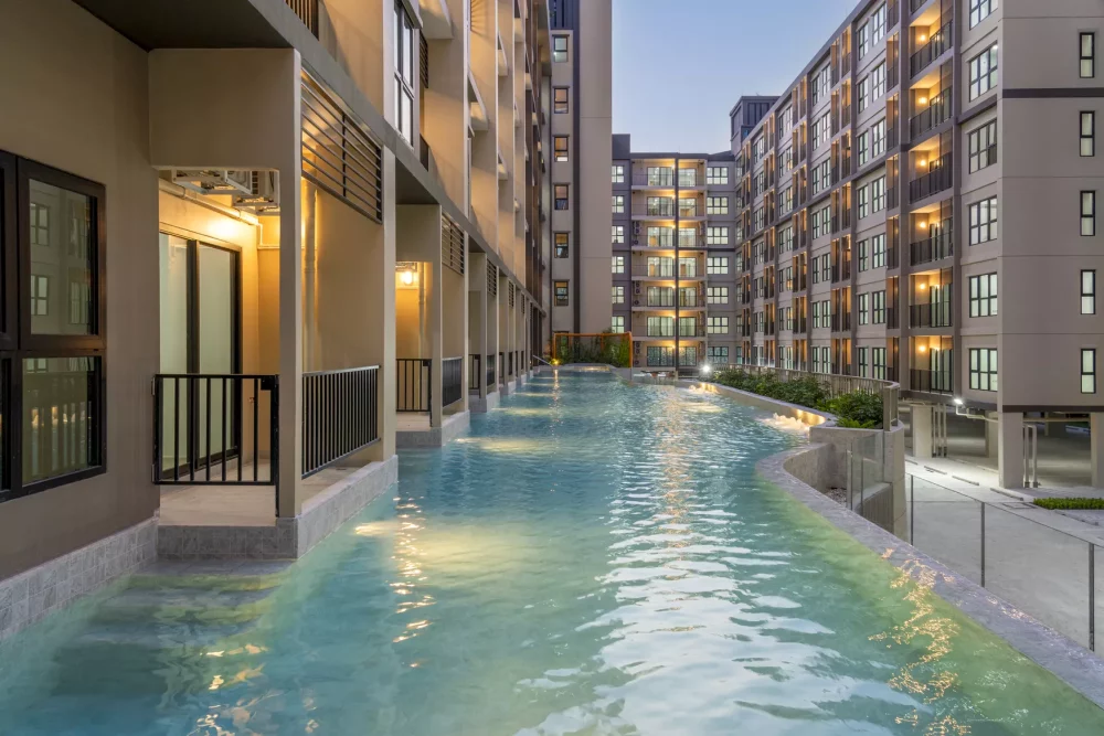 หนึ่งในไฮไลต์ที่สะท้อนแนวคิด Staycation ได้อย่างชัดเจนคือ Pool Access Room ห้องพักพิเศษในอาคาร A ที่ออกแบบให้พื้นที่ภายในห้องเชื่อมต่อกับสระว่ายน้ำโดยตรง เพียงเปิดประตูจากระเบียงก็สามารถก้าวลงสระได้ทันที เติมบรรยากาศการพักผ่อนแบบรีสอร์ตให้เกิดขึ้นได้จริงในทุกวัน ขณะที่พื้นที่ส่วนกลางของโครงการก็ครบครันและพร้อมใช้งาน ไม่ว่าจะเป็น Fitness, Co-working Space, Swimming Pool, Jacuzzi, Kids Pool, Roof Garden และ Jogging Trail รองรับทุกจังหวะชีวิต พร้อมเติมเต็มด้วยส่วนกลางแนวคิด New Lifestyle อาทิ Food Drop, Drop Store และ Private Storage เพื่อความสะดวกสบายยิ่งขึ้น ให้การกลับบ้านไม่ใช่แค่พัก…แต่คือการรีชาร์จพลังในแบบของคุณ