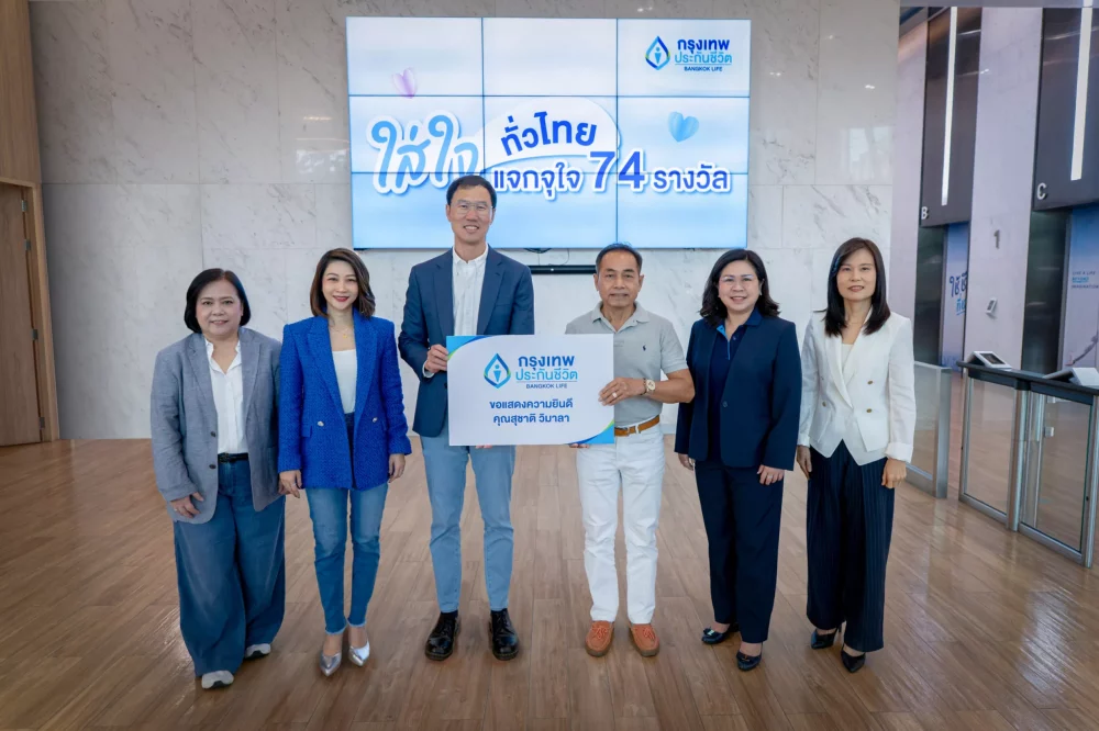 กรุงเทพประกันชีวิต เดินหน้าสร้างประสบการณ์การตลาดที่แตกต่าง เนื่องในโอกาสฉลองครบรอบ 74 ปี ด้วยการจัดแคมเปญ “ใส่ใจทั่วไทย แจกจุใจ 74 รางวัล” มอบรางวัลใหญ่ รถยนต์ไฟฟ้า Volvo รุ่น EX30 Ultra – Twin Motor Performance สี Cloud Blue พร้อมอุปกรณ์ชาร์จไฟ จำนวน 1 รางวัล รวมมูลค่า 1,540,000 บาท ให้แก่ผู้โชคดี นายสุชาติ วิมาลา เพื่อสะท้อนแนวคิดการเติบโตอย่างยั่งยืน พร้อมตอกย้ำภาพลักษณ์การเป็นบริษัทประกันชีวิตอันดับหนึ่งในด้านความใส่ใจ โดยมี นายโชน โสภณพนิช กรรมการผู้จัดการใหญ่และประธานเจ้าหน้าที่บริหาร นางสาวอรนาฎ นชะพงษ์ ผู้ช่วยผู้จัดการใหญ่ สายกลยุทธ์การตลาดและบริหารจัดการลูกค้า นางลัดดาวัลย์ สิทธิวรนันท์ ผู้ช่วยผู้จัดการใหญ่ สายช่องทางสถาบันการเงินและพันธมิตรทางธุรกิจ พร้อมคณะผู้บริหารจากธนาคารกรุงเทพ ร่วมแสดงความยินดี ณ บริษัท กรุงเทพประกันชีวิต จำกัด (มหาชน) สำนักงานใหญ่