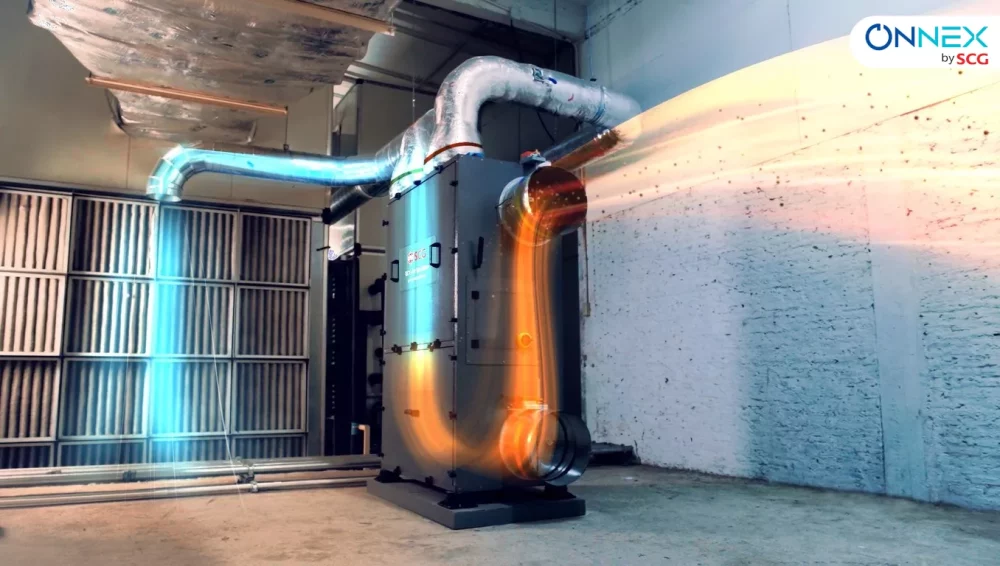 ONNEX Air Scrubber ระบบบำบัดอากาศภายในอาคารที่สามารถดูดจับ CO₂ และสารระเหยได้โดยตรง ช่วยลดความจำเป็นในการนำ Fresh Air จากภายนอกเข้ามาในปริมาณมาก ส่งผลให้ลดภาระการทำงานของระบบปรับอากาศ และทำให้การใช้พลังงานมีประสิทธิภาพมากยิ่งขึ้น