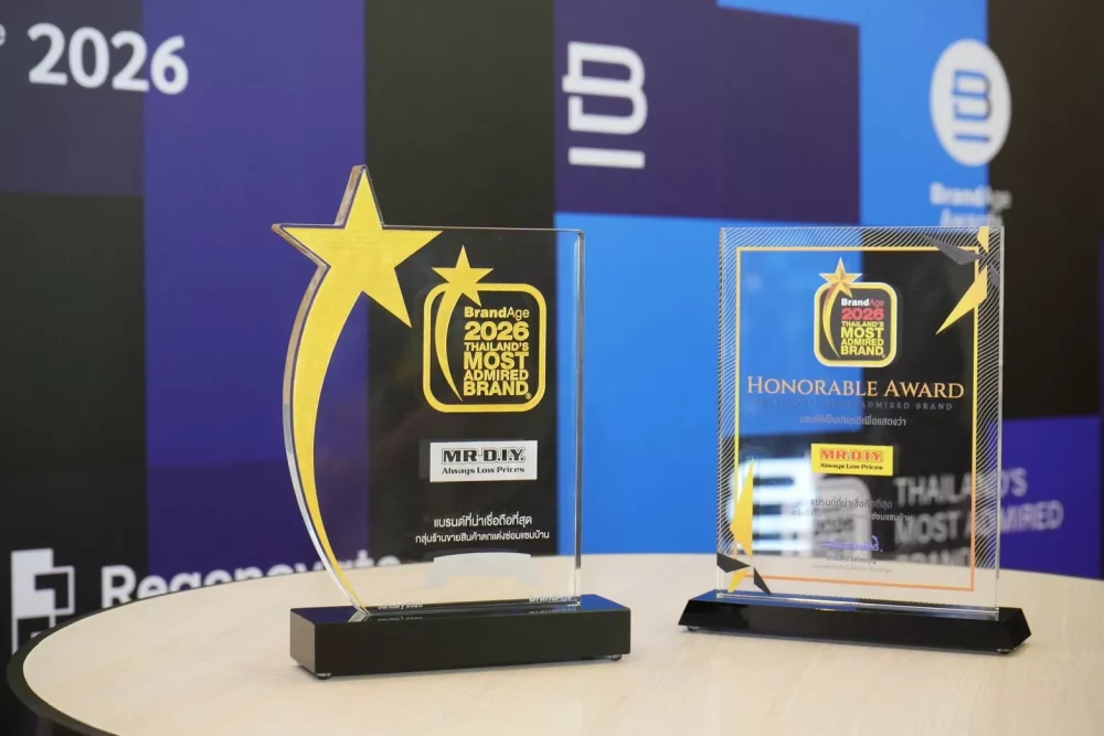 บริษัท มิสเตอร์. ดี.ไอ.วาย. โฮลดิ้ง (ประเทศไทย) จำกัด (มหาชน) ตอกย้ำความสำเร็จในฐานะผู้นำธุรกิจค้าปลีกอุปกรณ์ตกแต่งบ้านและสินค้าไลฟ์สไตล์ ด้วยการคว้า 2 รางวัลใหญ่จากเวที “2026 Thailand’s Most Admired Brand” ต่อเนื่องเป็นปีที่ 3 ได้แก่ รางวัลแบรนด์อันดับหนึ่งในหมวด “ช่องทางขายสมัยใหม่” กลุ่ม “ร้านขายสินค้าตกแต่งซ่อมแซมบ้าน” และ รางวัล “Brand Star Award” สำหรับแบรนด์ที่มีความโดดเด่นจากการดำเนินกิจกรรมและการส่งเสริมการตลาด รางวัลดังกล่าวสะท้อนความเชื่อมั่นและความไว้วางใจของผู้บริโภคทั่วประเทศ โดยมีคุณอานุภาพ คงมาลัย รองประธานบริหารฝ่ายการตลาด เป็นผู้แทนบริษัทฯ เข้ารับรางวัลในครั้งนี้