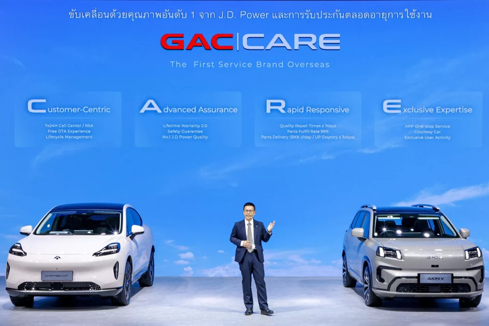Mr. Andrew Wang ประธานกรรมการบริหาร GAC AION Thailand ได้เปิดตัวนโยบาย “GAC CARE” ซึ่งเป็นนโยบายบริการแรกของ GAC สำหรับตลาดต่างประเทศ เพื่อดูแลรถยนต์ของลูกค้าตลอดอายุการใช้งาน โดยถูกสร้างขึ้นบน 4 เสาหลักสำคัญ ได้แก่ ยึดลูกค้าเป็นศูนย์กลาง (Customer Centric), มอบความเชื่อมั่นขั้นสูง (Advanced Assurance) ที่ขับเคลื่อนด้วยคุณภาพอันดับ 1 จาก J.D. Power, มีการตอบสนองที่รวดเร็ว (Rapid Response) รับประกันการซ่อมเสร็จสิ้นภายใน 7 วัน และมีความเชี่ยวชาญเฉพาะด้าน (Exclusive Expertise) ดูแลผู้ใช้ด้วยความเอาใจใส่ระดับมืออาชีพ