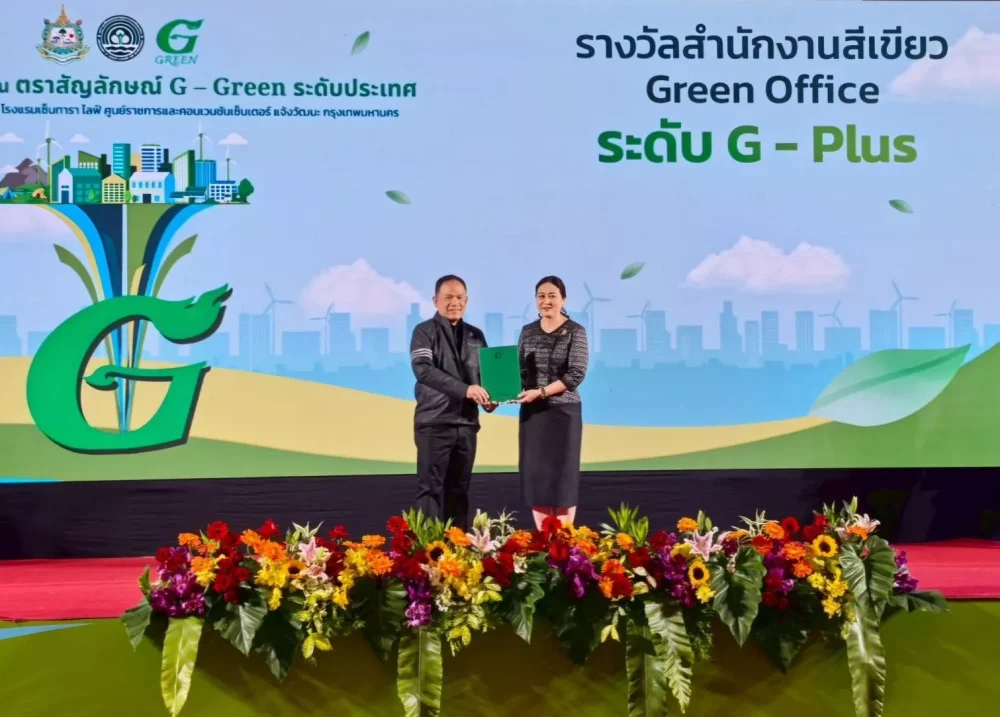 ว่าที่ ร.ต.ณรงค์วิทย์ พิลังกาสา ผู้อำนวยการฝ่ายอำนวยการ ธนาคารเพื่อการเกษตรและสหกรณ์การเกษตร (ธ.ก.ส.) เป็นผู้แทนธนาคาร รับโล่รางวัลตราสัญลักษณ์ G-Green และใบประกาศเกียรติคุณรับรอง สำนักงานสีเขียว (Green Office) ประจำปี 2568 ระดับ Green Office Plus ด้วยคะแนนการตรวจประเมินรวมสูงถึง 91.93 คะแนน โดยมี ดร.รวีวรรณ ภูริเดช ปลัดกระทรวงทรัพยากรธรรมชาติและสิ่งแวดล้อม เป็นประธานในพิธีและให้เกียรติมอบใบประกาศเกียรติคุณ ซึ่งสะท้อนให้เห็นถึงความสำเร็จของการบริหารจัดการองค์กรที่ให้ความสำคัญกับสิ่งแวดล้อมอย่างเป็นระบบในทุกมิติตั้งแต่ระดับนโยบายสู่การปฏิบัติจริง โดยมีการตรวจประเมินตามเกณฑ์ที่กรมการเปลี่ยนแปลงสภาพภูมิอากาศและสิ่งแวดล้อมกำหนดทั้ง 7 หมวด ประกอบด้วย 1. การกำหนดนโยบาย การวางแผนการดำเนินงานและการปรับปรุงอย่างต่อเนื่อง 2. การสื่อสารและสร้างจิตสำนึก 3. การใช้ทรัพยากรและพลังงาน 4. การจัดการของเสีย 5. การดูแลสภาพแวดล้อมและความปลอดภัย 6. การจัดซื้อและจัดจ้าง และ 7. การดำเนินการสำนักงานสีเขียว เพื่อความต่อเนื่อง โดย ธ.ก.ส. มีความมุ่งมั่นในการขยายผลการดำเนินงานโครงการสำนักงานสีเขียวสู่สาขาทั่วประเทศ เพื่อสนับสนุนเป้าหมายของรัฐบาลที่มุ่งสู่การปล่อยก๊าซเรือนกระจกสุทธิเป็นศูนย์ (Net Zero) ในปี 2050 ด้วยการใช้พลังงานอย่างมีประสิทธิภาพ ส่งเสริมพลังงานสะอาด และพร้อมรับมือการเปลี่ยนแปลงสภาพภูมิอากาศต่อไป ทั้งนี้ งานประกาศเกียรติคุณตราสัญลักษณ์ G-Green ระดับประเทศ จัดขึ้นเมื่อวันจันทร์ที่ 23 มีนาคม 2569 ณ โรงแรมเซ็นทารา ไลฟ์ ศูนย์ราชการและคอนเวนชันเซ็นเตอร์ แจ้งวัฒนะ กรุงเทพมหานคร