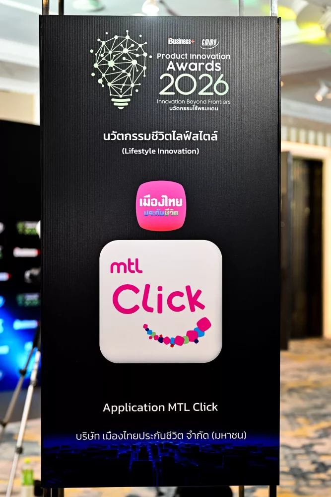 บริษัท เมืองไทยประกันชีวิต จำกัด (มหาชน) คว้ารางวัล “BUSINESS+ PRODUCT INNOVATION AWARDS 2026”  ด้านนวัตกรรมชีวิตไลฟ์สไตล์ (Lifestyle Innovation) ต่อเนื่องเป็นปีที่ 7 นับตั้งแต่ปี 2020–2026  ตอกย้ำความสำเร็จของ MTL Click  Application” แพลตฟอร์มดิจิทัลที่พัฒนาเพื่อดูแลลูกค้าอย่างรอบด้านในทุกมิติสะท้อนถึงความมุ่งมั่นในการพัฒนานวัตกรรมด้านผลิตภัณฑ์และบริการอย่างต่อเนื่อง เพื่อยกระดับประสบการณ์ของลูกค้าให้ตอบโจทย์การใช้ชีวิตและไลฟ์สไตล์ของคนในยุคดิจิทัลได้อย่างแท้จริง