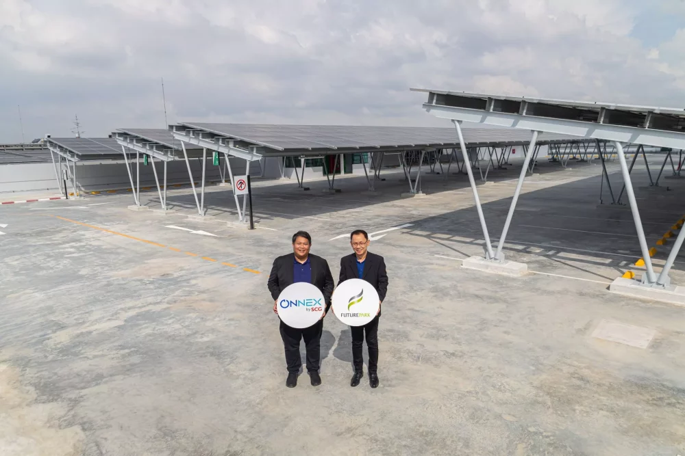 คุณสุชาย วัชอภัยกุล, กรรมการผู้จัดการร่วม-กลุ่มงานบริหารทั่วไป ผู้บริหารศูนย์การค้าฟิวเจอร์พาร์คและสเปลล์ (ด้านขวาในภาพ) เปิดเผยว่า “การตัดสินใจเลือกใช้ระบบโซลาร์จาก ONNEX by SCG มาจากความเชื่อมั่นในแบรนด์ และศักยภาพของทีมงานที่มีความเชี่ยวชาญในการออกแบบระบบโซลาร์ให้เหมาะสมกับโครงสร้างศูนย์การค้าขนาดใหญ่ที่มีความซับซ้อน ทั้งในเชิงโครงสร้างและฟังก์ชันการใช้งาน อีกทั้งบริการ Operation & Maintenance (O&M) ที่ครอบคลุม ยังช่วยให้เรามั่นใจได้ว่าระบบจะดำเนินงานได้อย่างมีประสิทธิภาพ โดยทางศูนย์การค้าฟิวเจอร์พาร์คและสเปลล์มองว่า การร่วมมือกับ ONNEX by SCG ไม่ได้เป็นเพียงการติดตั้งโซลาร์ แต่เป็นการสร้างพันธมิตรด้านพลังงาน เพื่อร่วมขับเคลื่อนธุรกิจสู่สังคมคาร์บอนต่ำ โดยภายใต้แนวทาง Green Future นั้น ชัดเจนว่าเรามุ่งเน้นใช้เทคโนโลยีสะอาด เพื่อสร้างสมดุลระหว่างการผลักดันธุรกิจให้เติบโต ร่วมไปกับการดูแลสิ่งแวดล้อม”