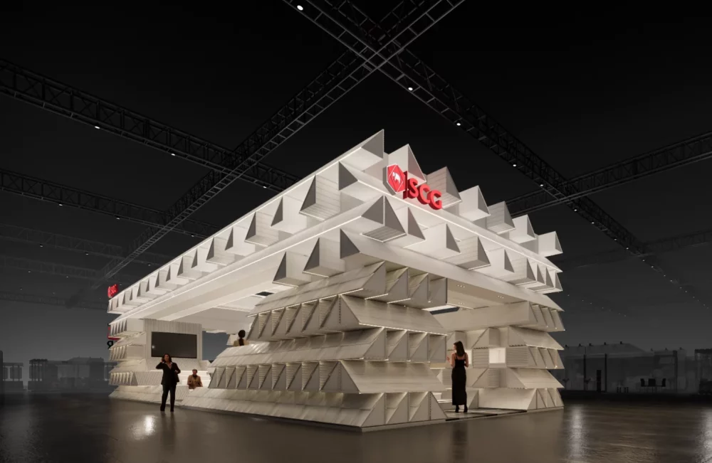 โดยไฮไลต์สำคัญของงานคือโซน SCG Pavilion บูธขนาดใหญ่ที่ออกแบบโดย บริษัท สถา ณ สถาปนิก ผ่านรูปแบบ สถาปัตยกรรม Delta Stack หรือโครงสร้างสามเหลี่ยมซ้อนชั้น ซึ่งสะท้อนแนวคิดการก้าวข้ามขีดจำกัดของวัสดุไปสู่การใช้งานที่มีความหมายกับชีวิตจริง โดยภายใน Pavilion ได้รวบรวมนวัตกรรมวัสดุที่ตอบโจทย์ทั้งความงาม ประสิทธิภาพ และความยั่งยืนไว้ในพื้นที่เดียว