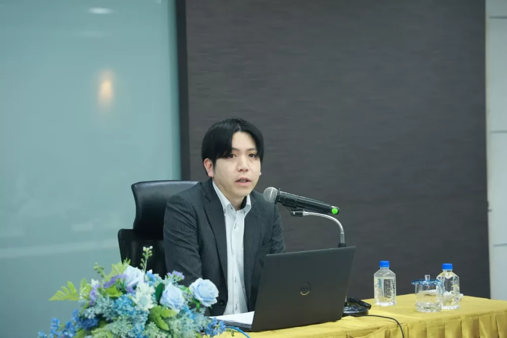 ช่วงบ่ายบรรยายโดย Mr. Yosuke Fujisawa ผู้เชี่ยวชาญด้านวิทยาศาสตร์ข้อมูล (Data Science Officer) จาก Sumitomo Life Insurance ในหัวข้อ “Data Science and AI Adoption in Japanese Financial Institutions” นำเสนอความก้าวหน้าของการใช้เทคโนโลยี AI ในสถาบันการเงินญี่ปุ่นที่มีสัดส่วนการใช้งานสูงถึงร้อยละ 93.1 โดยเน้นกรณีศึกษาการใช้งานจริง (Use Cases) อาทิ การใช้ Generative AI เพิ่มผลิตภาพในองค์กร