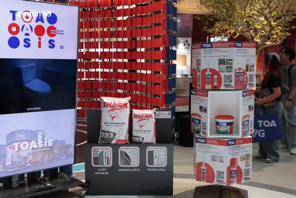 – TOA Mortar นำเสนอผลิตภัณฑ์มอร์ต้าประสิทธิภาพสูง รวมถึง “ฉลาม ออลอินวัน พลาสท์” ปูนฉาบอเนกประสงค์ที่ช่วยลดขั้นตอนการทำงานและลดการสูญเสียวัสดุ